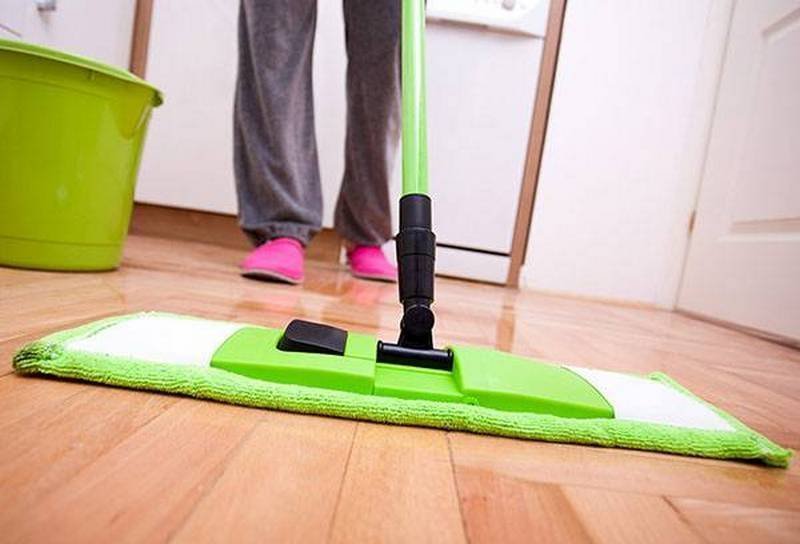 Ламинат нужно убирать сухой или слегка влажной тряпкой, избегая лишней воды.